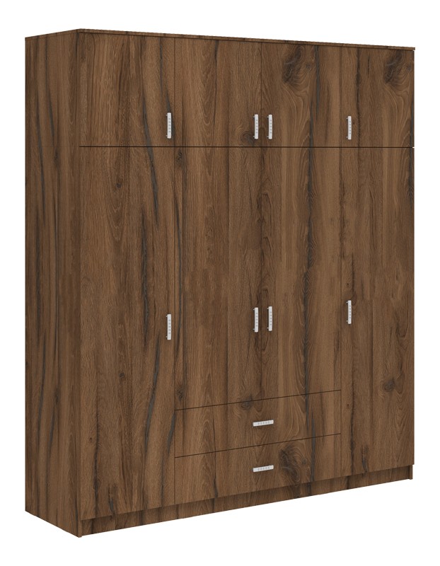 Ντουλάπα τετράφυλλη με συρτάρια Royal pakoworld καρυδι-oak 200x58x230εκ