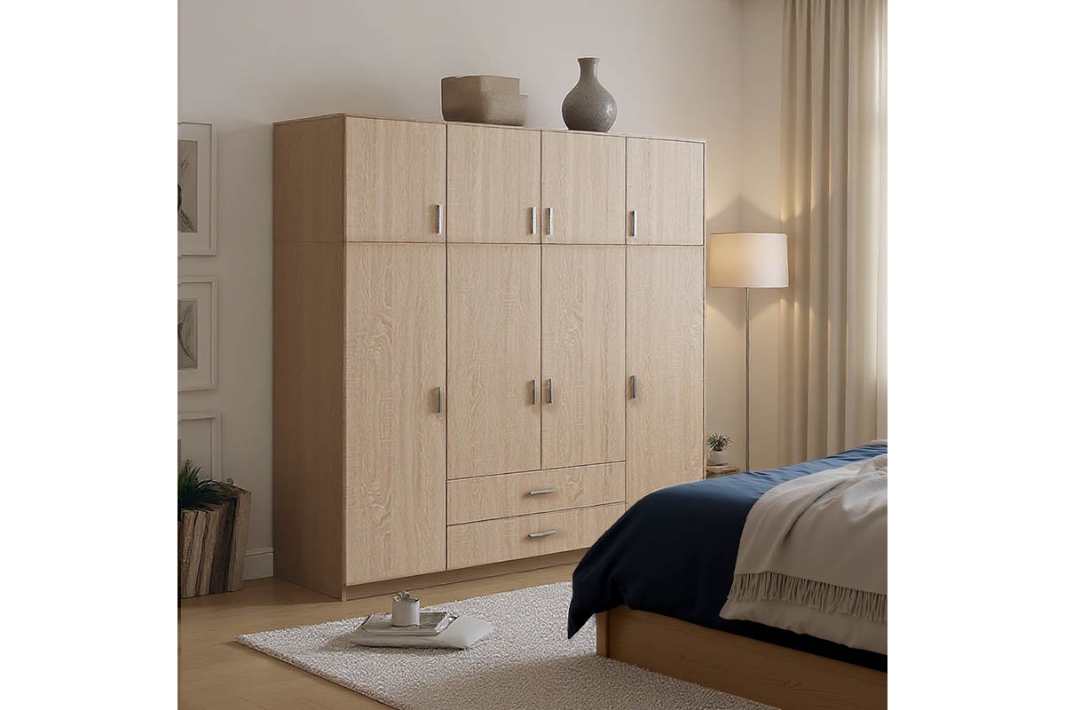 Ντουλάπα τετράφυλλη Royal pakoworld με συρτάρια και πατάρι sonoma 200x58x230εκ