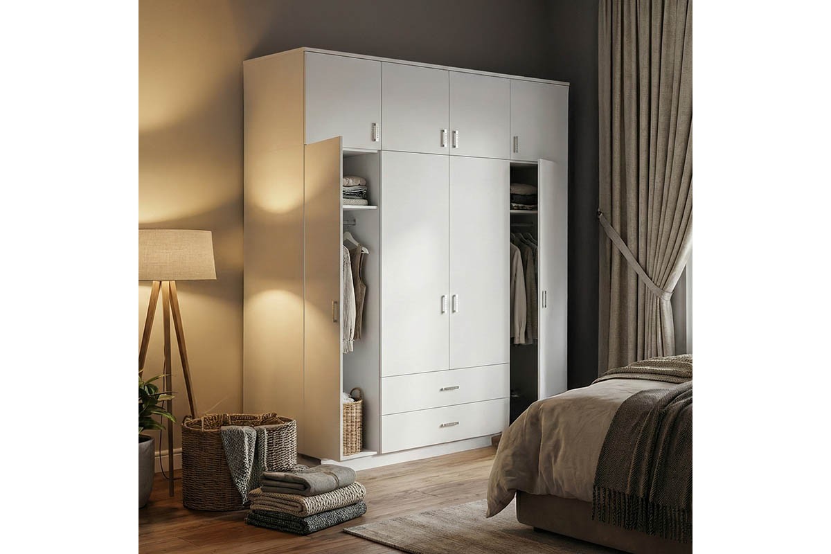 Ντουλάπα τετράφυλλη Royal pakoworld με συρτάρια και πατάρι λευκό 200x58x230εκ