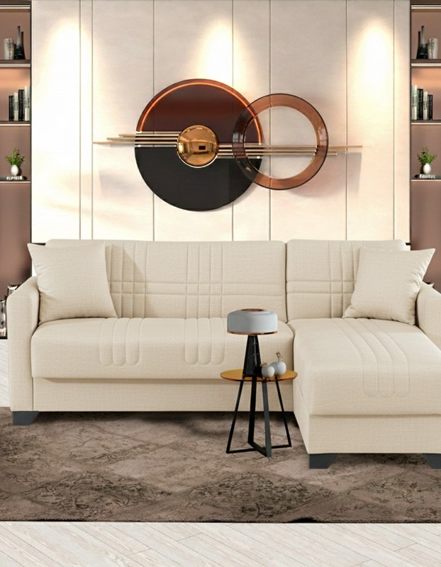 Γωνιακός καναπές-κρεβάτι αναστρέψιμος Stashio pakoworld ύφασμα κρεμ 202x143x84εκ