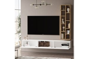 Μοντέρνα σύνθεση σαλονιού που θα ανανεώσει τον χώρο σας, δίνοντας σας παράλληλα τη δυνατότητα μεγάλου αποθηκευτικού χώρου για διακοσμητικά αντικείμενα και βιβλία. Μία ιδανική πρόταση διακόσμησης για το καθιστικό ή το σαλόνι σας, καθώς με τον συνδυασμό ραφιών και ντουλαπιού, δημιουργεί ένα εντυπωσιακό αποτέλεσμα.