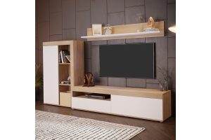 Σύνθετο σαλονιού Zorbi pakoworld λευκό-sonoma oak μελαμίνης 265x41x158.5εκ