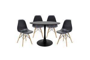 To σετ περιλαμβάνει τέσσερις καρέκλες και ένα τραπέζι.