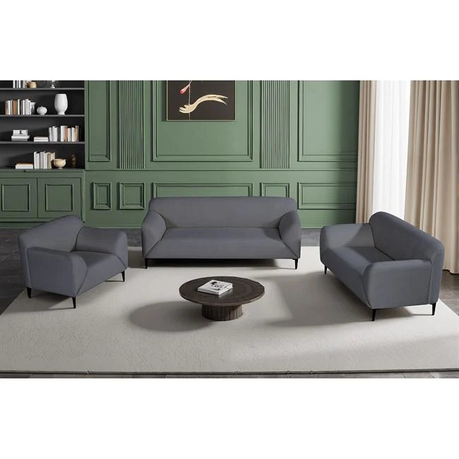 Ε9404,S1 VICTORIA Set Σαλόνι (1+2+3) Ύφασμα Σκούρο Γκρι