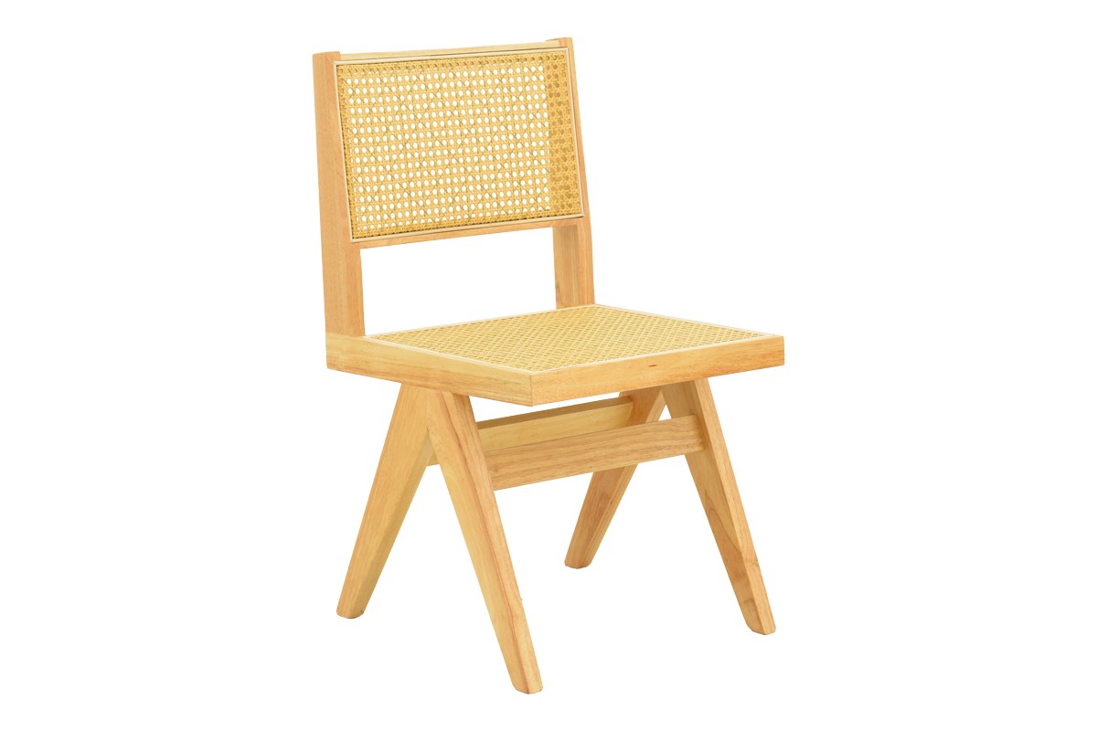 Καρέκλα Winslow κατασκευασμένη από φυσικό ξύλο rubberwood, επενδεδυμένη με rattan.