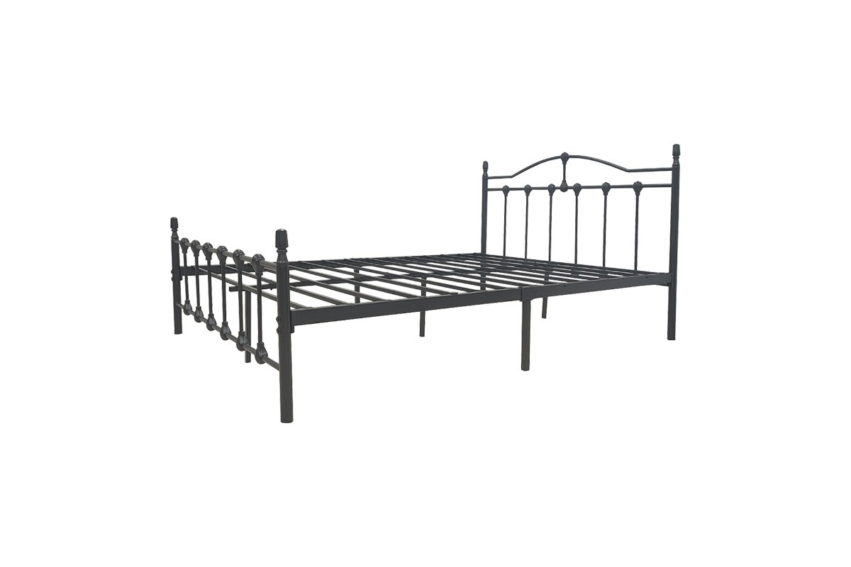 Ένα κομψό και ανθεκτικό κρεβάτι με μεταλλικό σκελετό, σχεδιασμένο να προσφέρει στιβαρή υποστήριξη και αισθητική αναβάθμιση σε κάθε υπνοδωμάτιο. Το κρεβάτι διαθέτει ένα διακοσμητικό κεφαλάρι με καμπυλωτές λεπτομέρειες και ένα αντίστοιχο, χαμηλότερο ποδι, προσδίδοντας έναν κλασικό αλλά ταυτόχρονα μοντέρνο χαρακτήρα.
